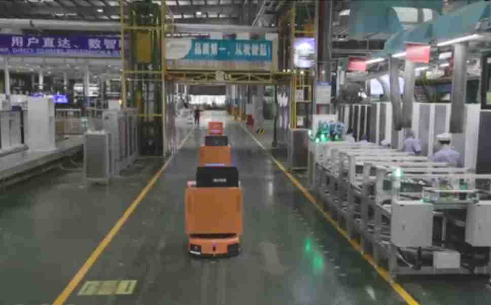 为车载冰箱物流配送打造的智能解决方案,,,,包含产中物流通过潜伏举升AMR搬运至线边,,产后成品物流智能仓储,,,,流程包含产中物流智能齐套入库,,线边安灯叫料AMR智能配送至线边,,,成品入库、、出库,,,通过无人堆高车机器人,,,,智能仓储管理替代人工作业管理,,,实现更高存储、、更高效率、、、更具柔性化的解决方案。。。。